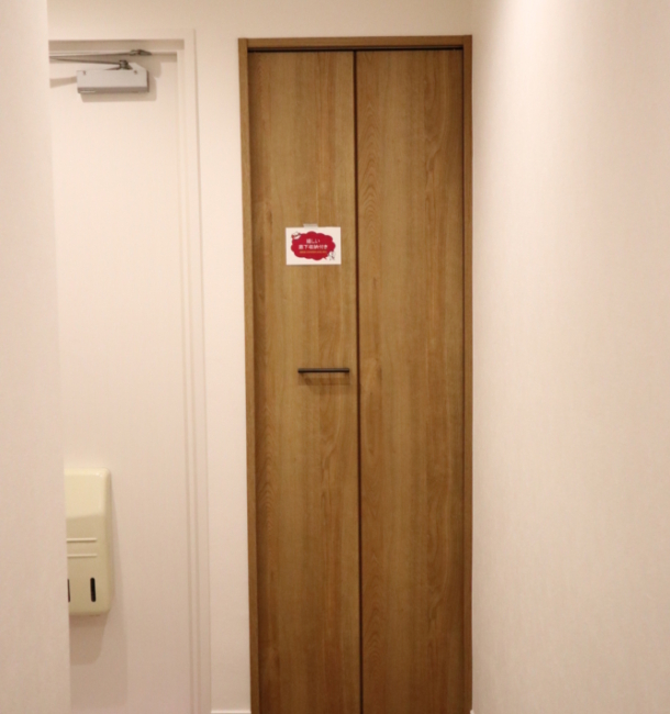 ⇒洗面室から入るにも洗濯パンと扉が緩衝するため、折れ戸で解決